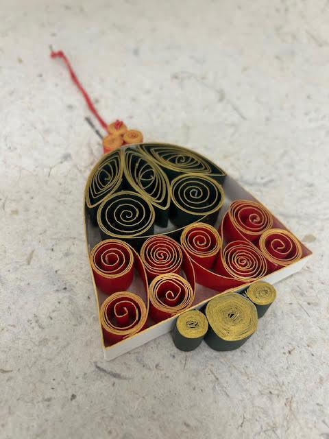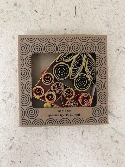 Decoro Natalizio artigianale in Quilling. Altezza 10 cm Packaging : scatolina in cartoncino kraft.
