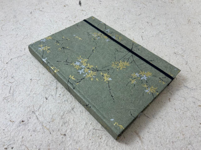 Agenda 2026 artigianale giornaliera con copertina cartonata rivestita in carta lokta con stampa in serigrafia ed elastico.