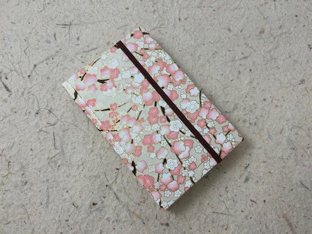 Agenda 2026 artigianale giornaliera con copertina cartonata rivestita in carta chiyogami con stampa in serigrafia ed elastico.