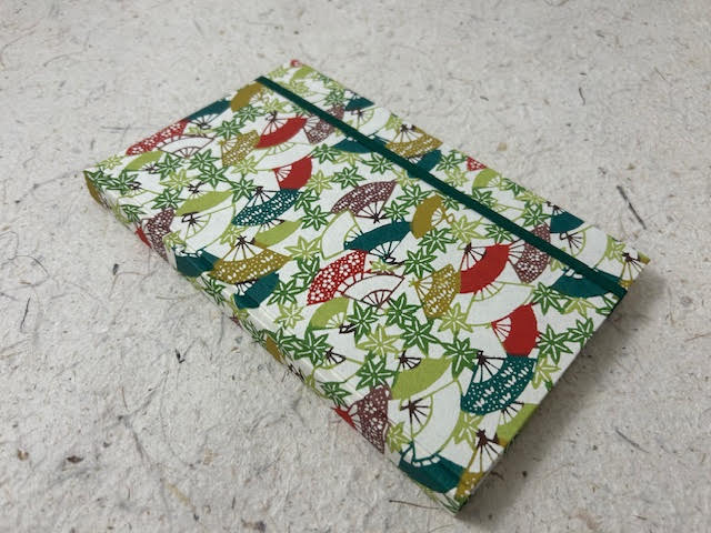 Agenda 2026 artigianale settimanale bifacciale con copertina cartonata rivestita in carta katazome con stampa in serigrafia ed elastico.