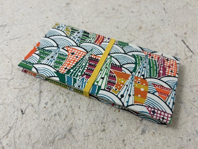 Agenda 2026 artigianale settimanale orizzontale a colonne con copertina cartonata rivestita in carta giapponese katazome con stampa in serigrafia ed elastico.
