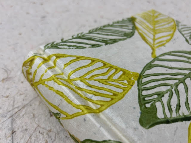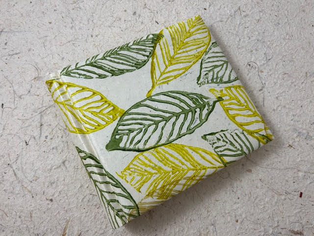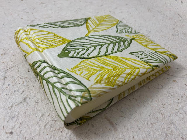 Album fotografico artigianale con copertina imbottita rivestita in carta lokta con disegni di foglie nei toni del verde su fondo naturale. Composto di 30 pagine di misura 18 x 16 cm con velina. Perfetto anche per polaroid. Fascetta protettiva in cartone ondulato compresa.