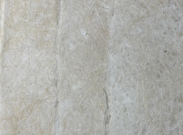Foglio di carta fatto a mano dalle fibre della corteccia dell’albero del gelso, il kozo, e fibre di pitaya (dragon fruit). Ideale per creare lampade e paralumi. Formato 55 x 80 circa. Colore avorio e fibre di pitaya giallino chiaro.